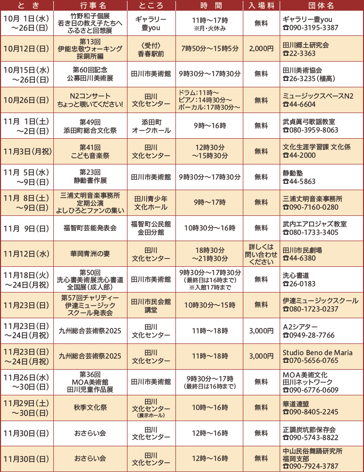 ※行事内容など、詳しくは各団体へ問い合わせください。