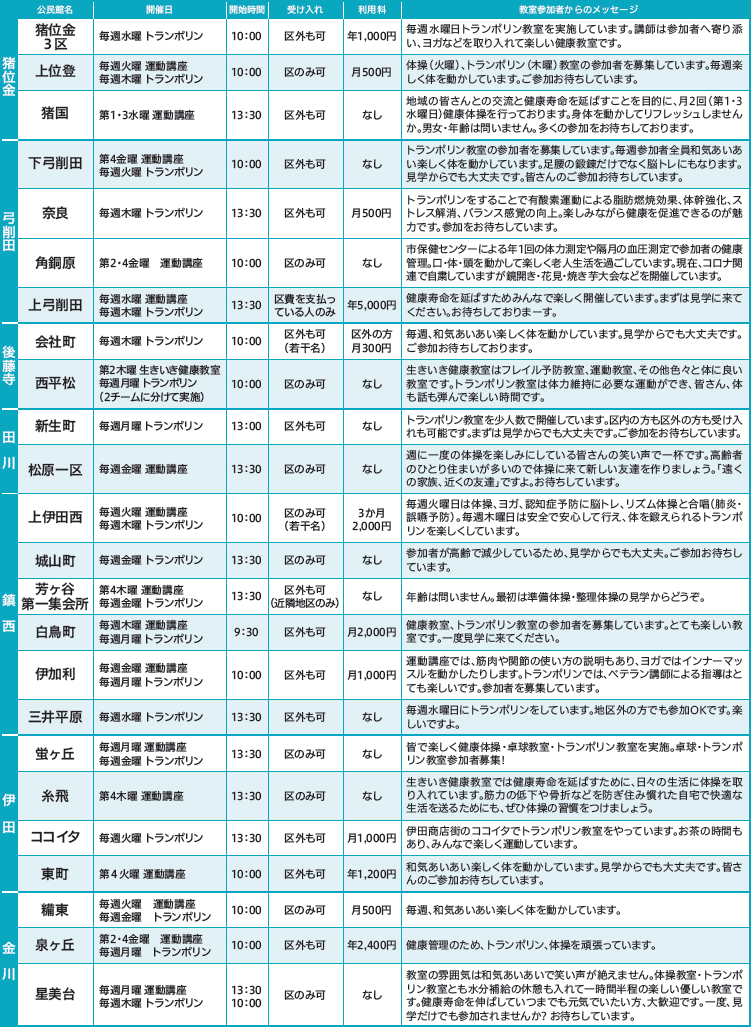 ※他にも開催している公民館はあります。詳しくは市保健センターに問い合わせください。
