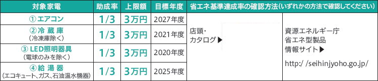・助成対象家電の各品目の目標年度の省エネ基準達成率が100%以上のもの