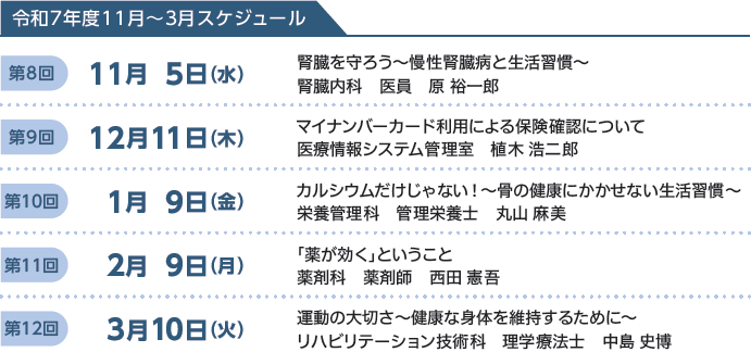 当院では、田川地域のみなさんを対象に、生活習慣予防を中心に、アンケートをもとにみなさんの関心の高い内容を毎月お話しています。