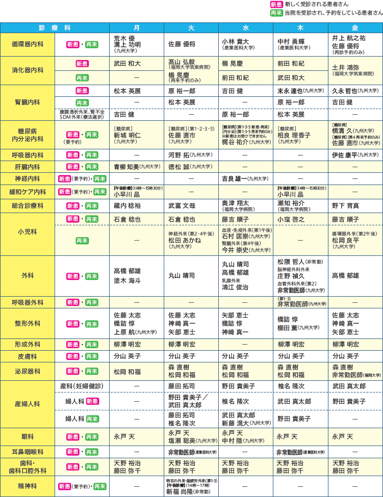 ※診療科によって、急に休診となる場合がありますので、ホームページの「休診のお知らせ」(新着掲載)をご覧ください。もしくは、電話でお問合せください。