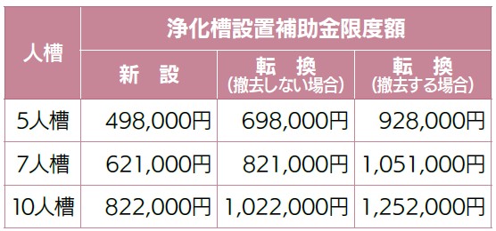 市では、専用住宅等へ浄化槽を設置する人に以下のように補助金を交付しています。