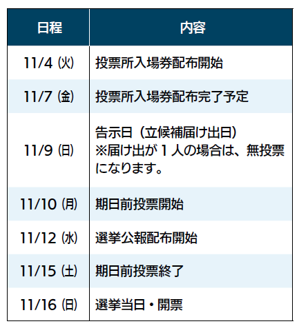 ※無投票になった場合、10日以降の選挙日程は実施されません。