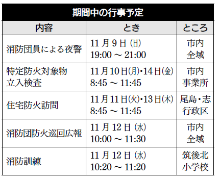 令和7年度全国統一防火標語は「急ぐ日も足止め火を止め準備よし」です。