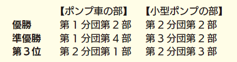 消防団員による、ポンプ車や小型ポンプを使った放水技術の早さや正確性などを競い合う消防操法大会が市役所駐車場で開催されました。観客が見守る中、各部の代表が規律の取れた動きで訓練の成果を披露しました。