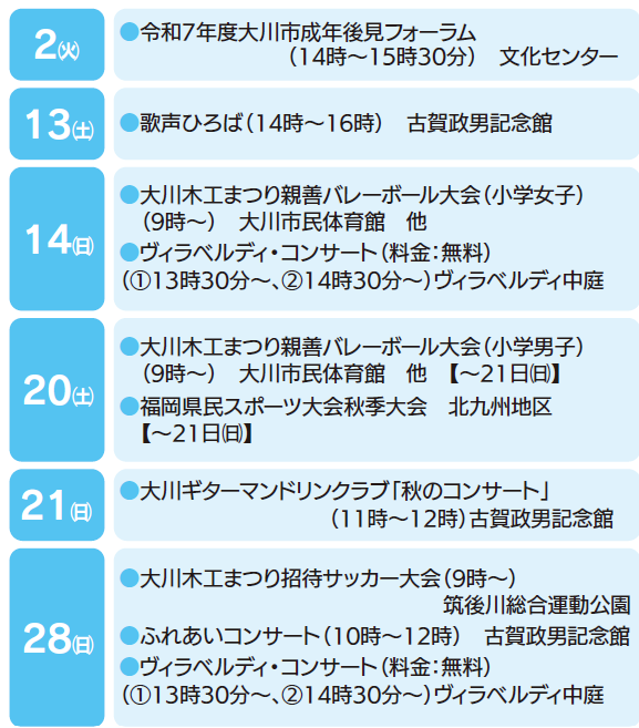 くらし お出かけカレンダー 9 月の行事予定 51/55 前の記事 次の記事 発行日 : 2025年09月01日 自治体名 : 福岡県大川市 広報紙名 : 市報おおかわ 令和7年9月1日号 Tweet シェアする 映画情報 9月のマイナンバー窓口延長日