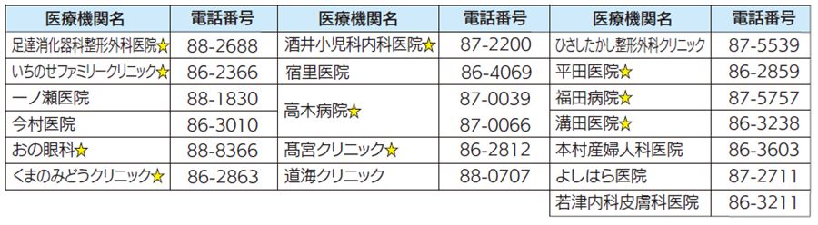※要予約、新型コロナ予防接種は★が付いた医療機関のみ対応