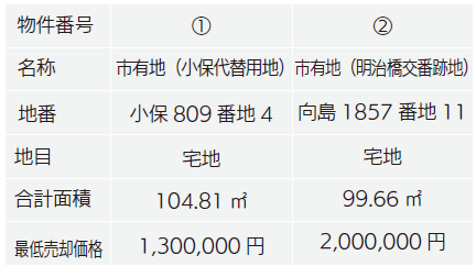 一般競争入札によって、市有地を売却します。購入を希望する人は、入札にご参加ください。
