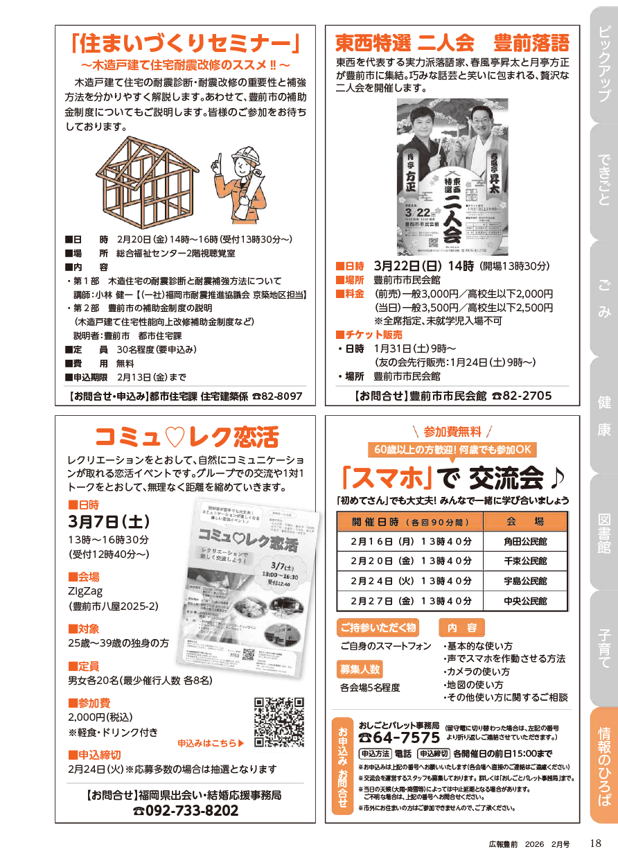イベント 広報豊前 令和8年2月号 18面 18/22 前の記事 次の記事 発行日 : 2026年01月31日 自治体名 : 福岡県豊前市 広報紙名 : 広報豊前 令和8年2月号 Tweet シェアする 広報豊前 令和8年2月号 17面 広報豊前 令和8年2月号 19面