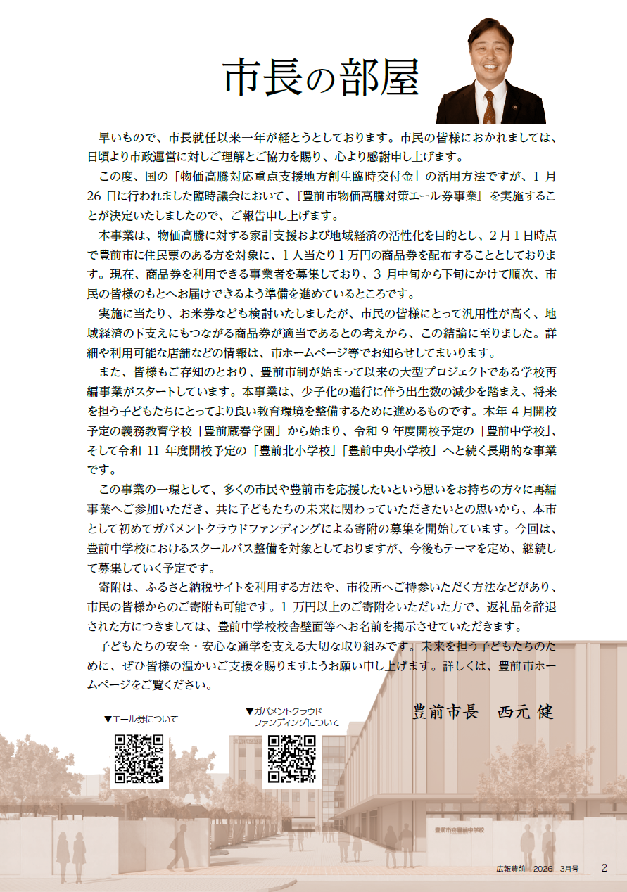 くらし 広報豊前 令和8年3月号 2面 2/24 前の記事 次の記事 発行日 : 2026年02月28日 自治体名 : 福岡県豊前市 広報紙名 : 広報豊前 令和8年3月号 Tweet シェアする 広報豊前 令和8年3月号 表紙 広報豊前 令和8年3月号 3面