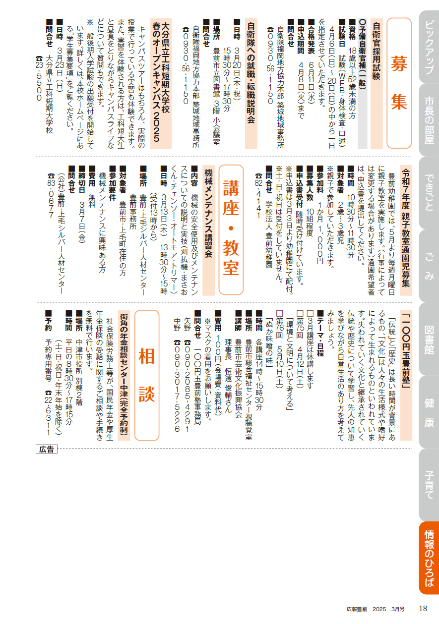 その他 広報豊前 令和7年3月号 18面 18/28 前の記事 次の記事 発行日 : 2025年02月28日 自治体名 : 福岡県豊前市 広報紙名 : 広報豊前 令和7年3月号 Tweet シェアする 広報豊前 令和7年3月号 17面 広報豊前 令和7年3月号 19面
