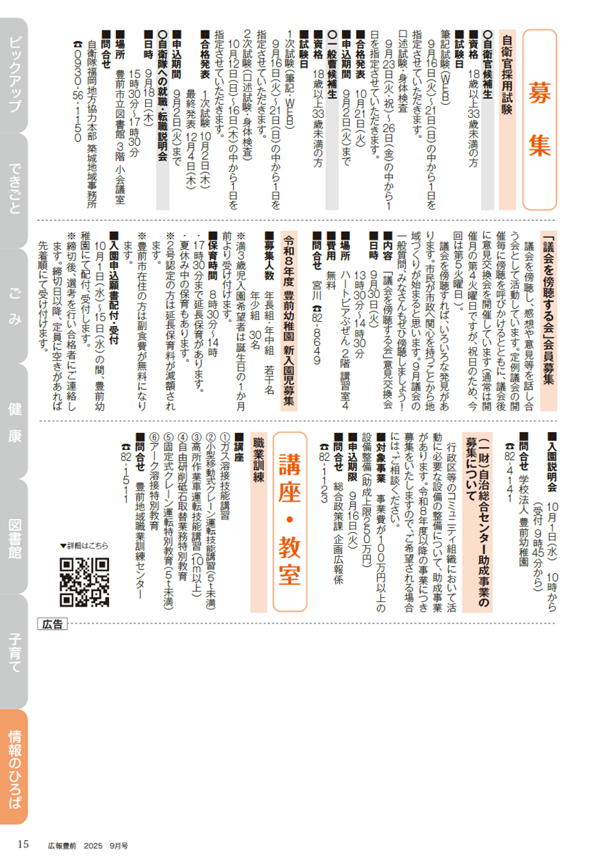 その他 広報豊前 令和7年9月号 15面 15/32 前の記事 次の記事 発行日 : 2025年08月31日 自治体名 : 福岡県豊前市 広報紙名 : 広報豊前 令和7年9月号 Tweet シェアする 広報豊前 令和7年9月号 14面 広報豊前 令和7年9月号 16面