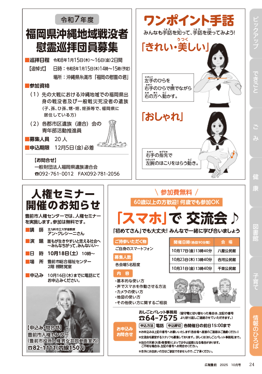くらし 広報豊前 令和7年10月号 24面 24/26 前の記事 次の記事 発行日 : 2025年09月30日 自治体名 : 福岡県豊前市 広報紙名 : 広報豊前 令和7年10月号 Tweet シェアする 広報豊前 令和7年10月号 23面 広報豊前 令和7年10月号 25面