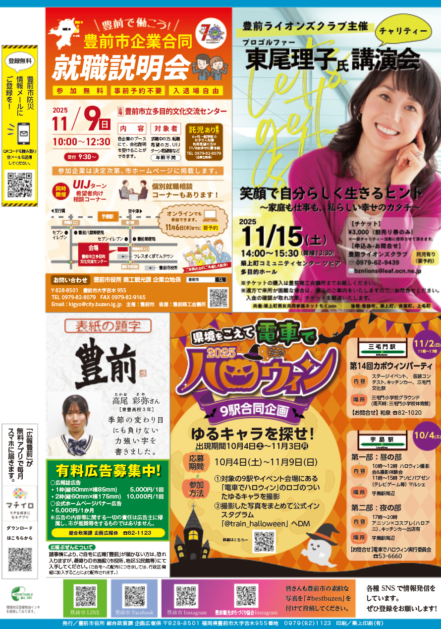 その他 広報豊前 令和7年10月号 裏表紙 26/26 前の記事 発行日 : 2025年09月30日 自治体名 : 福岡県豊前市 広報紙名 : 広報豊前 令和7年10月号 Tweet シェアする 広報豊前 令和7年10月号 25面