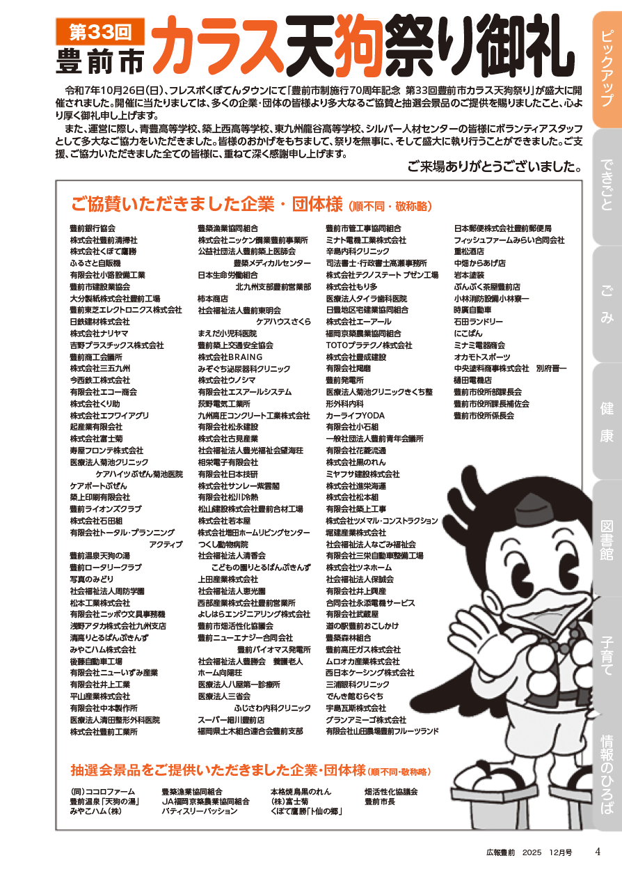 イベント 広報豊前 令和7年12月号 4面 4/26 前の記事 次の記事 発行日 : 2025年11月30日 自治体名 : 福岡県豊前市 広報紙名 : 広報豊前 令和7年12月号 Tweet シェアする 広報豊前 令和7年12月号 3面 広報豊前 令和7年12月号 5面
