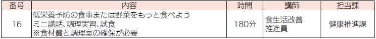 料金:無料(16番は食材費が必要)