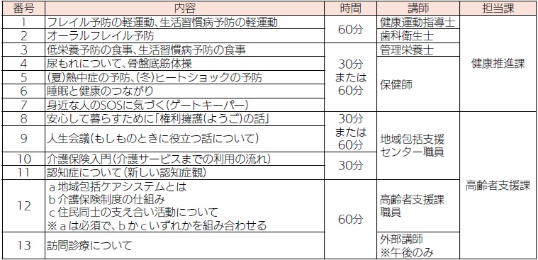 健康推進課と高齢者支援課が専門職などを講師として地域へ派遣します。