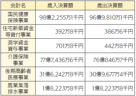 国民健康保険などの事業は、保険料など特定の収入によって行うため、一般会計とは別に会計を設けています。