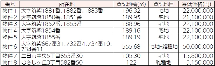 入札参加資格:個人または法人。なお、未成年者、成年被後見人などは参加することができません。詳細は筑紫野市有財産一般競争入札案内書を確認してください。