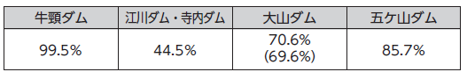 その他 主要ダムの貯水率 34/44 前の記事 次の記事 発行日 : 2026年01月01日 自治体名 : 福岡県大野城市 広報紙名 : 広報「大野城」 令和8年1月1日号 (12月1日時点) 大野城市の水源は、牛頸ダムや地下水などの自己水源が約3分の1で、残りの約3分の2は、筑後川水系の水を福岡地区水道企業団から受水しています。 ※( )は福岡地区水道企業団持分 Tweet シェアする 市役所・地域行政センターのご案内 休日当番医