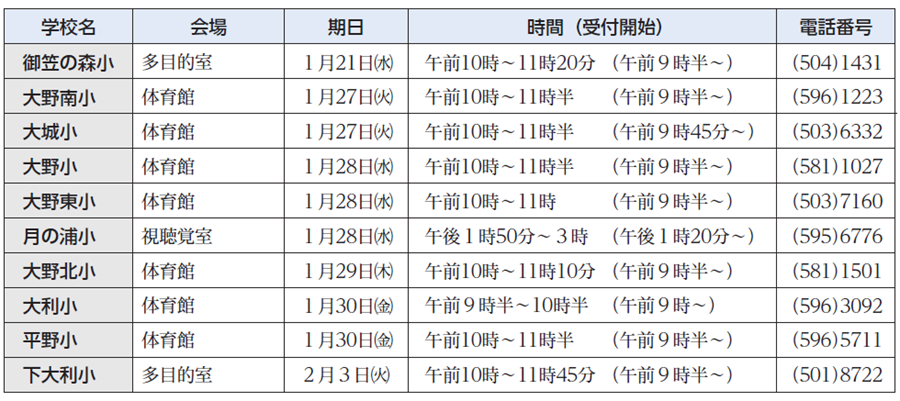 問い合わせ先:各小学校