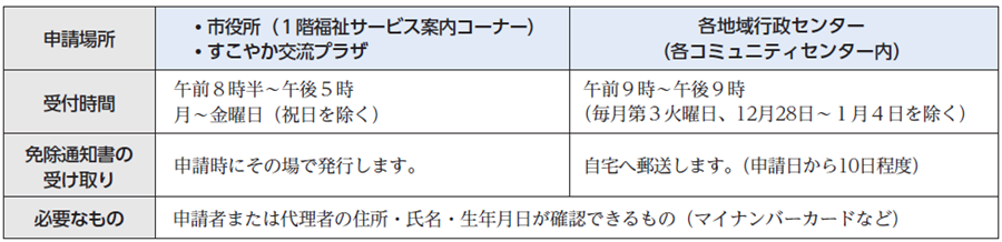・予防接種自己負担金免除通知書(事前申請が必要です。下の表を確認してください。)