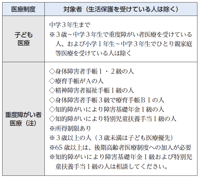 次の表に当てはまる人で、医療証を持っていない人は、問い合わせてください。