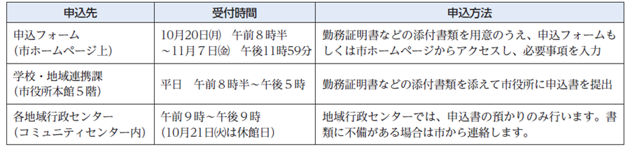 申込方法:勤務証明書などを事前にお手元に用意のうえ、申込フォームより申し込んでください。
