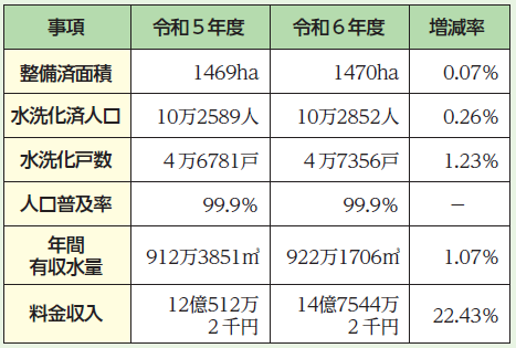 令和6年度の下水道事業では、922万1706立方メートル(前年度比1.07%増)の下水道使用により、使用料収入は14億7544万2千円でした。