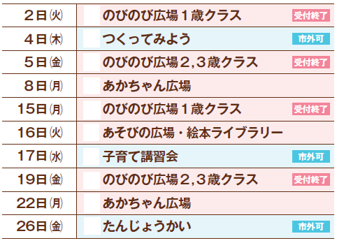◇[1月]のびのび広場(各回12組 抽選)〔申込受付中〕