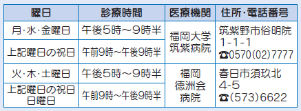 ※受け付けは全て午後9時までですが、病院の状況によっては早めに終了する場合があります。