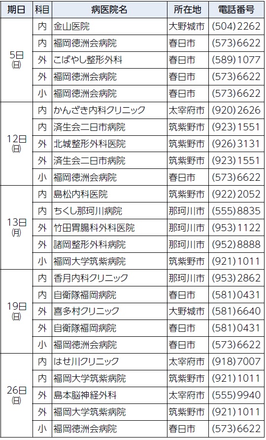 ※令和7年9月号でお知らせしました9/28(日)の休日当番医に変更がありました。