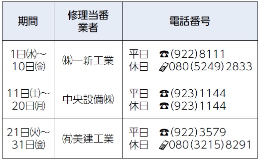 ◎漏水していて水道メーターが回っているときや受付時間外(ページID:3631)