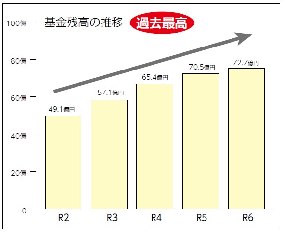 市の貯金にあたる基金は、公共施設の改修などに活用した一方で、それ以上の金額を積立し、令和6年度末時点で72.7億円の過去最高額となっています。貯めている理由は基金の目的によってさまざまですが、災害や公共施設の改修など将来に備えるため積極的に積立をおこなっています。