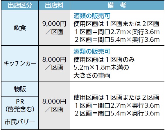 ・応募多数の場合は、抽選により出店者を決定。