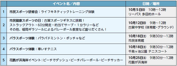 ■〔スポーツ〕10月は古賀市民スポーツ月間~体を動かしてみませんか?~