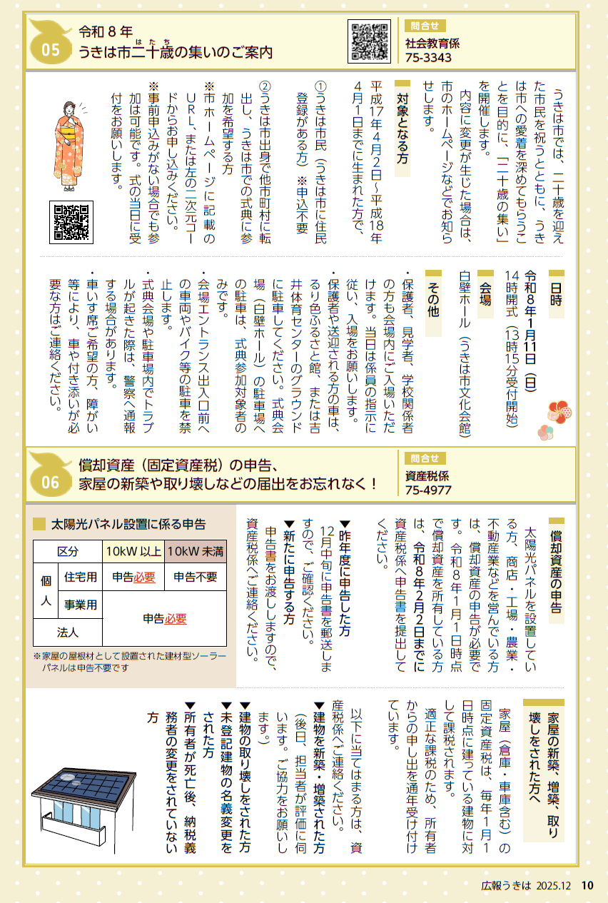 くらし 広報うきは 2025年12月号 P.10 10/27 前の記事 次の記事 発行日 : 2025年12月01日 自治体名 : 福岡県うきは市 広報紙名 : 広報うきは 2025年12月号 No.450 Tweet シェアする 広報うきは 2025年12月号 P.9 広報うきは 2025年12月号 P.11