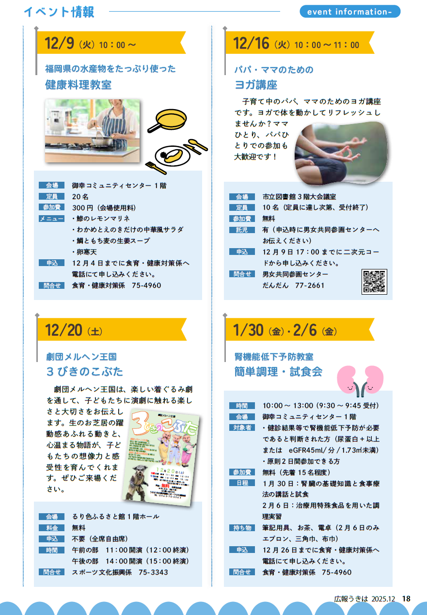 くらし 広報うきは 2025年12月号 P.18 17/27 前の記事 次の記事 発行日 : 2025年12月01日 自治体名 : 福岡県うきは市 広報紙名 : 広報うきは 2025年12月号 No.450 Tweet シェアする 広報うきは 2025年12月号 P.17 広報うきは 2025年12月号 P.19