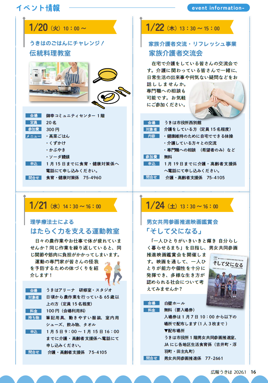 くらし 広報うきは 2026年1月号 P.16 15/27 前の記事 次の記事 発行日 : 2026年01月01日 自治体名 : 福岡県うきは市 広報紙名 : 広報うきは 2026年1月号 No.451 Tweet シェアする 広報うきは 2026年1月号 P.14-15 広報うきは 2026年1月号 P.17