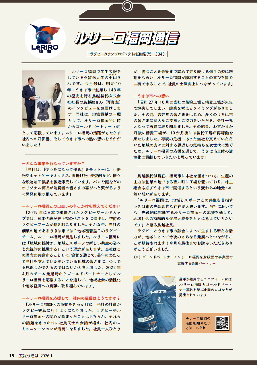 スポーツ 広報うきは 2026年1月号 P.19 18/27 前の記事 次の記事 発行日 : 2026年01月01日 自治体名 : 福岡県うきは市 広報紙名 : 広報うきは 2026年1月号 No.451 Tweet シェアする 広報うきは 2026年1月号 P.18 広報うきは 2026年1月号 P.20