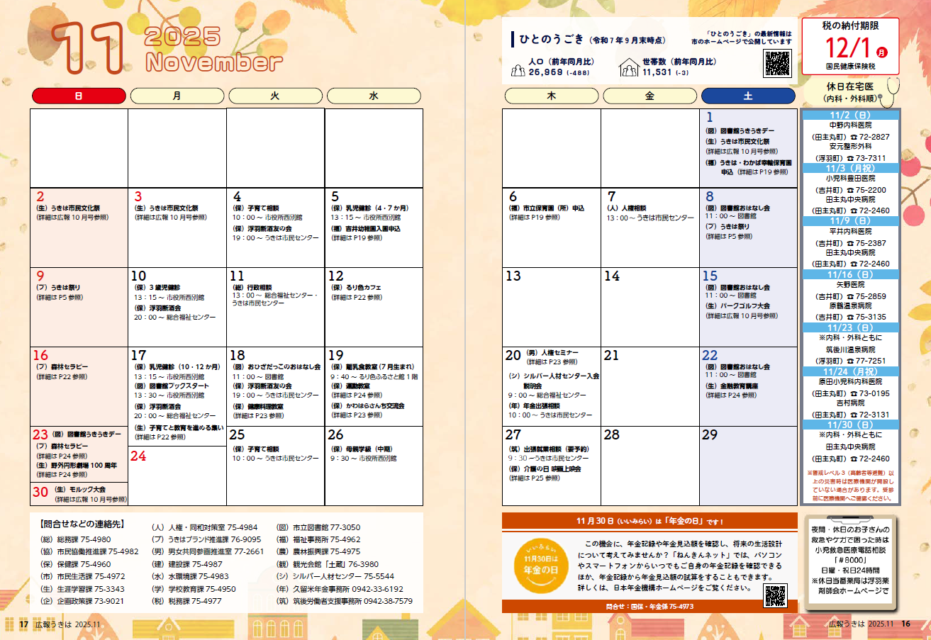 くらし 広報うきは 2025年11月号 P.16-17 16/31 前の記事 次の記事 発行日 : 2025年11月01日 自治体名 : 福岡県うきは市 広報紙名 : 広報うきは 2025年11月号 No.449 Tweet シェアする 広報うきは 2025年11月号 P.15 広報うきは 2025年11月号 P.18