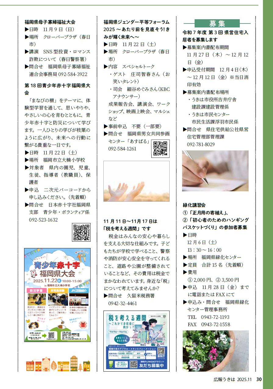 くらし 広報うきは 2025年11月号 P.30 29/31 前の記事 次の記事 発行日 : 2025年11月01日 自治体名 : 福岡県うきは市 広報紙名 : 広報うきは 2025年11月号 No.449 Tweet シェアする 広報うきは 2025年11月号 P.29 広報うきは 2025年11月号 P.31