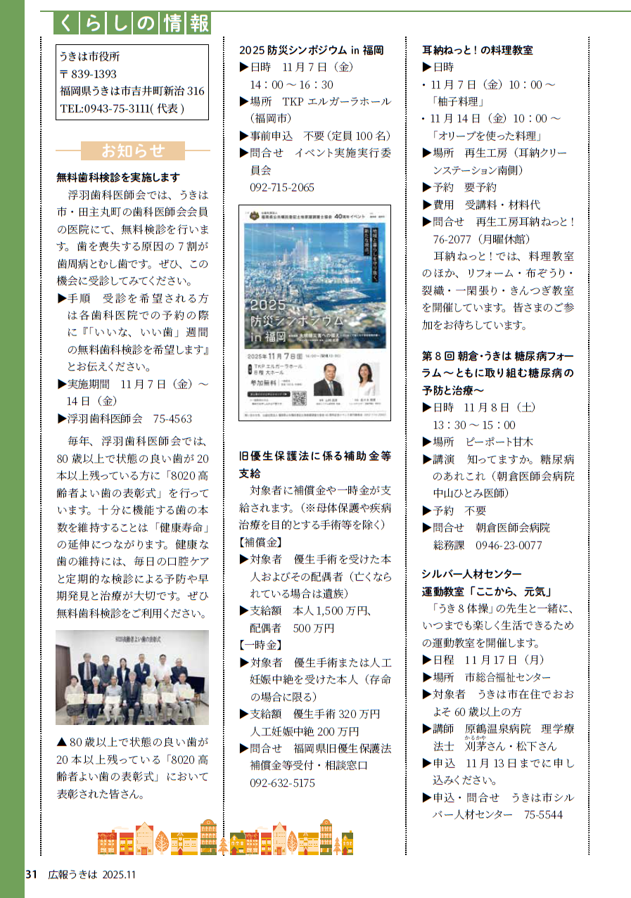 くらし 広報うきは 2025年11月号 P.31 30/31 前の記事 次の記事 発行日 : 2025年11月01日 自治体名 : 福岡県うきは市 広報紙名 : 広報うきは 2025年11月号 No.449 Tweet シェアする 広報うきは 2025年11月号 P.30 広報うきは 2025年11月号 P.32