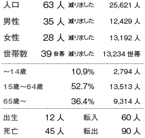 ※住民基本台帳法の改正により、外国人登録者数を含む人口情報となっています。