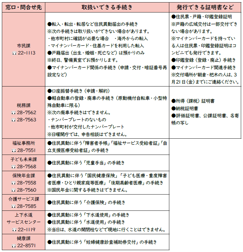 開庁場所:市役所本庁【電話】22-1111(代表)