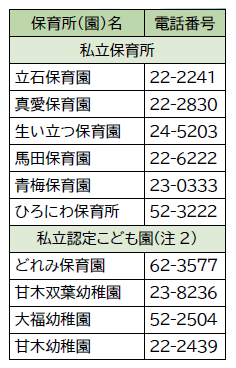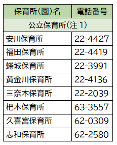 保育所部門:市子ども未来課保育所係、朝倉・杷木支所市民窓口係に申込書を提出