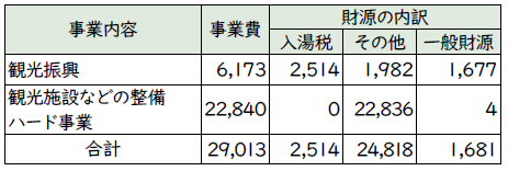 入湯税は、環境衛生施設、鉱泉源の保護管理施設、観光施設、消防施設などの整備や、観光振興の費用に充てるために設けられた目的税で、鉱泉浴場の入湯行為に対してかかるものです。令和6年度の入湯税の決算額は2514万円で、表に記載した事業の財源の一部に充てられています。