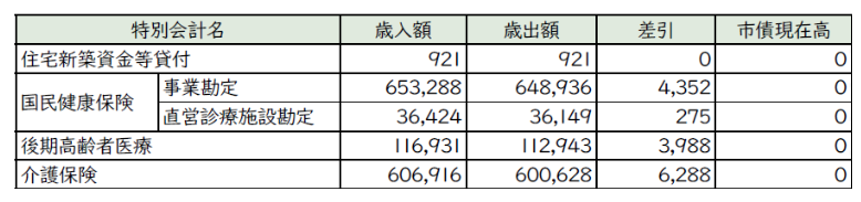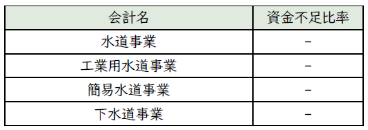 資金不足比率とは、公営企業の赤字の割合を特別会計・企業会計ごとに示したものです。黒字の場合は表れません。したがって、朝倉市の公営企業はすべて赤字がなく資金不足はありません。
