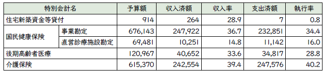 ■特別会計予算の執行状況(単位:万円、収入率・執行率は%)