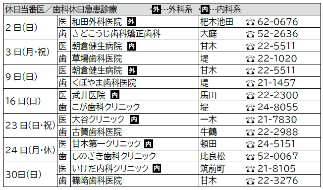※当番医の診療時間は9時~17時。歯科の診療時間は9時~15時。
